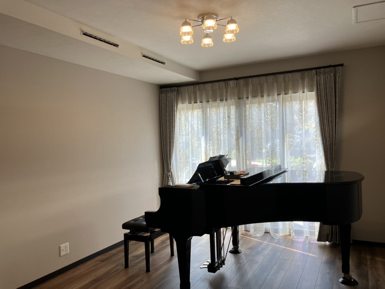 グランドピアノとカフェシアトルの内観に施主様こだわりの照明が素敵なお家です(*'▽')