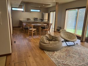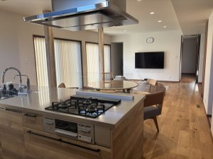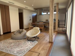 土間とリビングが隣り合わせの遊び心ある間取りです。広々としてゆとりのある空間 ぜひ ご体感ください!!